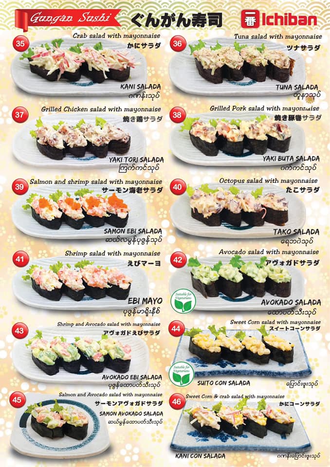 Ichiban Sushi Japanese Restaurant Started from 2017.It is Located at Building No.(1),Room No.(100),Shwe Gone Daing Road.Aung Chan Thar Housing,Bahan Township.The Shop decoration is simple stylish,clean,hygiene environment,all the setting are modernized and air conditioned inside.