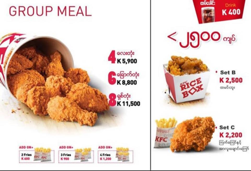 KFC Myanmar is well-known shop in Myanmar.KFC (Capital Hyper Mart Branch) is open at 14-E, Min Nandar Road, Ground Flr, Dawbon Tsp.KFC (Dawbon branch) is combining with the services of pleasant staffs, attractive interior decoration and simple design.The staffs are friendly and good service providers and it is pleasant restaurant for customers.
