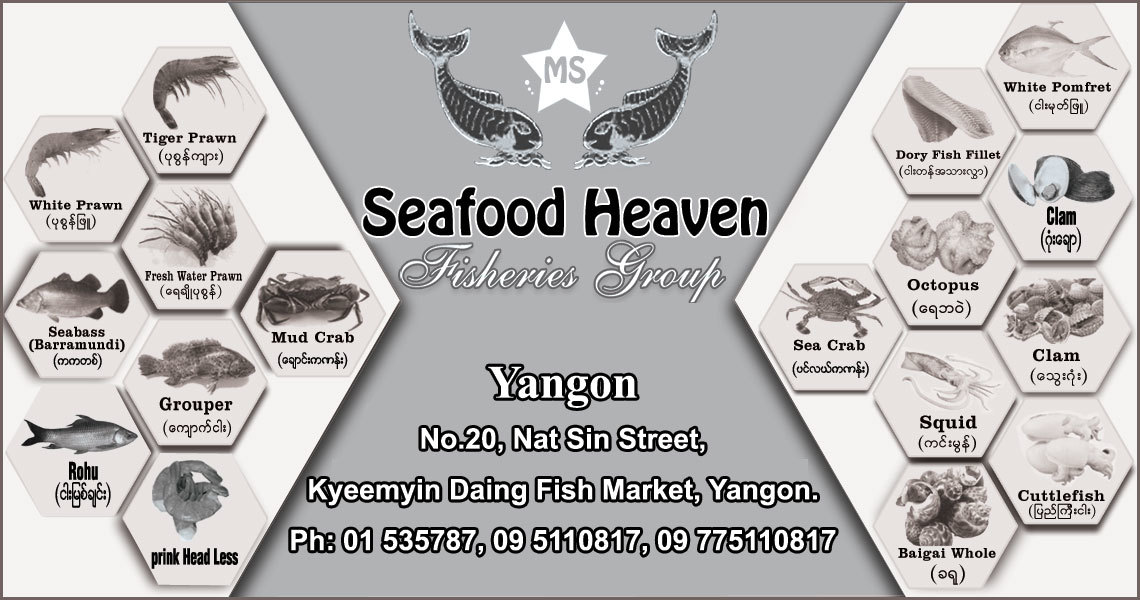 Morning Star 20, Nat Sin St., Kyeemyin Daing Fish Market, Kyeemyin Daing, Yangon , Myanmar Previous Next 09-775110817, 01-535787, 09-5110817 Open at 9:00 AM Sunday: 9:00 am - 7:00 pm Monday: 9:00 am - 7:00 pm Tuesday: 9:00 am - 7:00 pm Wednesday: 9:00 am - 7:00 pm Thursday: 9:00 am - 7:00 pm Friday: 9:00 am - 7:00 pm လတ္ဆတ္သန္႔ရွင္း